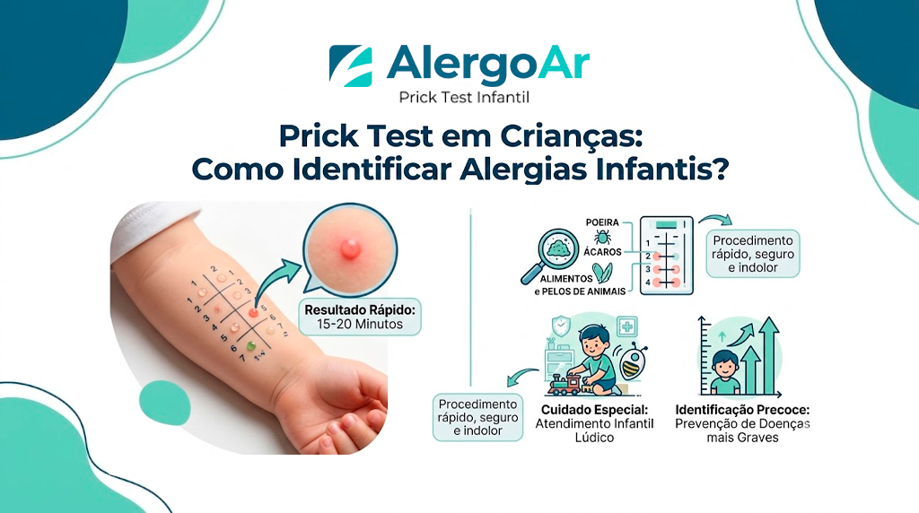 Ver um filho sofrendo com crises alérgicas gera muita angústia nos pais. O Prick Test infantil é um procedimento rápido, seguro e praticamente indolor, essencial para identificar se a causa dos sintomas é poeira, ácaros, alimentos ou pelos de animais. Na Alergo Ar, sabemos que o atendimento infantil requer um cuidado especial. O teste consiste […]